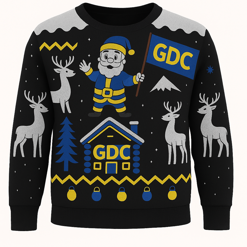Nu te bestellen in de webshop, de GDC kersttrui!